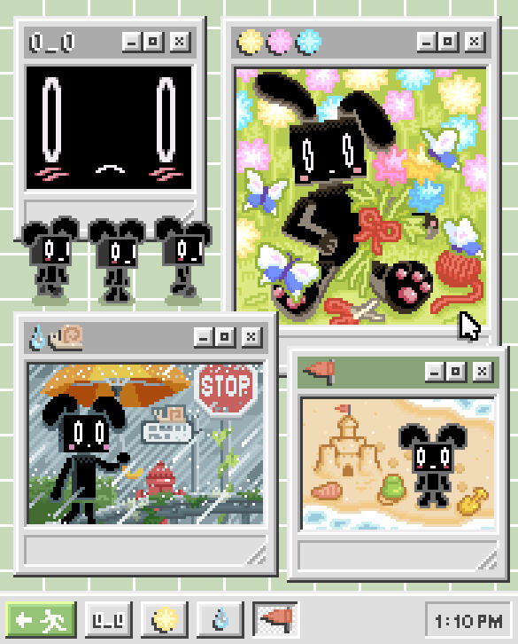 One Windows mock-up cost $450.Each window has a background, and you always get four windows: one fullbody, one experimental, one sprite, one bust OR half-body depending on the piece, plus decorations outside of the windows, like extra sprites, desktop icons, stickers etc. For these bigger commission pieces I like to have a set amount of work to pace myself.I keep the windows mock-ups the same size from piece to piece, so it will have the same dimensions as the example above.